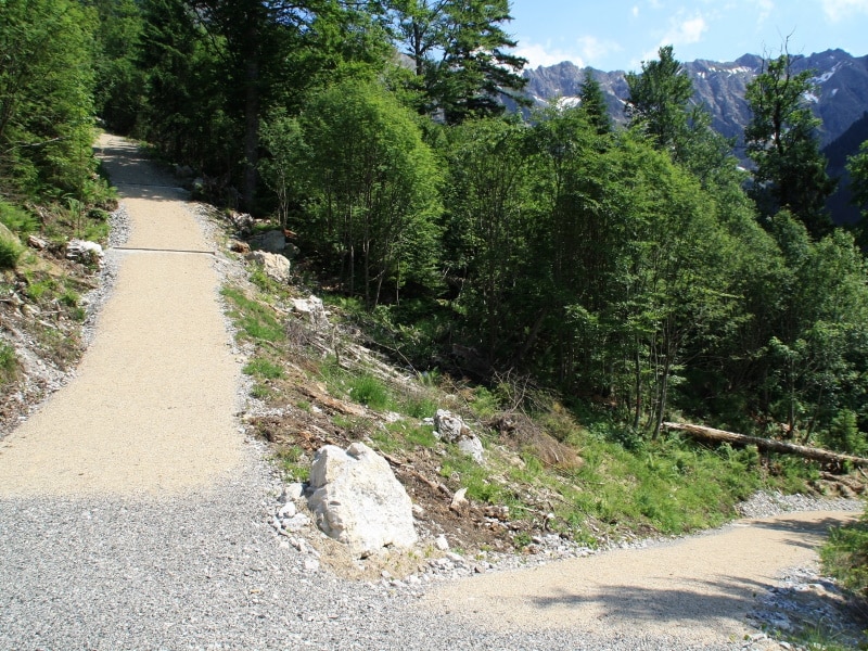 Da der Forstweg durchgängig starke Steigungen aufweist, wurde bei der Wahl des Belags insbesondere auf Scherfestigkeit und Wasserdurchlässigkeit geachtet: Der Einbau von HanseMineral® als dynamischer Zwischenschicht sorgt dafür, dass das Wasser schnell nach unten abgeleitet wird. Gleichzeitig schließt sie die Lücke in der Kornabstufung von der Tragschicht zur Deckschicht und sorgt dafür, dass die Wegedecke ebener wird. Dadurch erhöht sich die Scherfestigkeit.