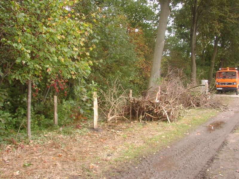 Das Deckmaterial des Forstweges hatte sich durch die Befahrung mit PKWs und forstwirtschaftlichen Fahrzeugen teilweise an den Rand verlagert. Starker Regen, der nicht richtig abfließen konnte, hatte den Weg ausgewaschen und es entstanden Spurrillen und Schlaglöcher. Auch die aufwachsende Vegetation auf dem Weg bereitete zunehmend Probleme.